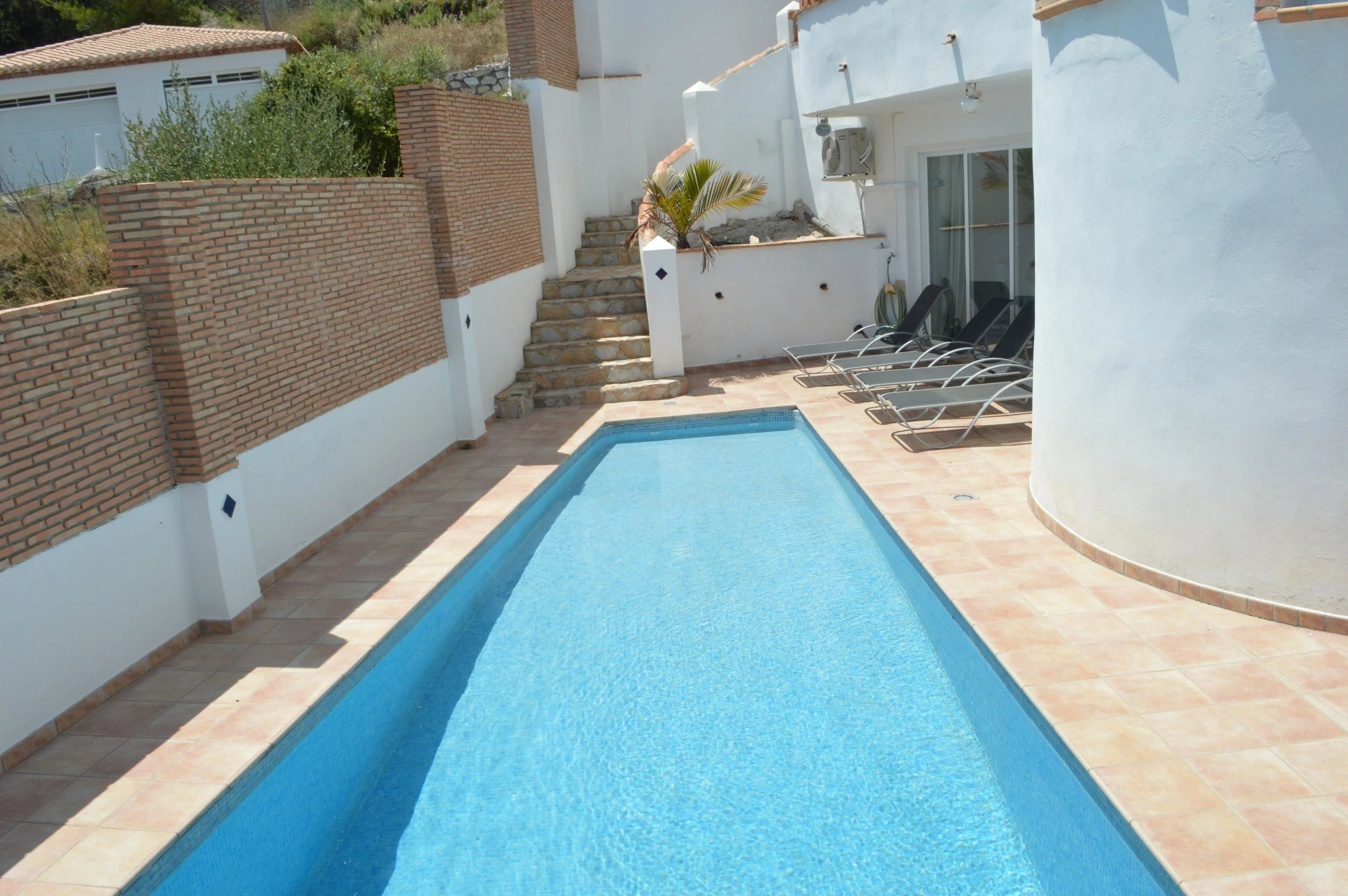 From the main entrance, the upper level of the house is accessed by a couple of steps. External steps lead down to the private pool and terrace. This lovely area can also be accessed from the lower, bedroom level of the villa, making it a very flexible house to spend time in.